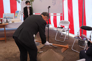 “ 鍬(くわ)入れの儀” 「無事完成」への願いを込め、 心を込めて鍬入れを行ない、いよいよ着工となります! |