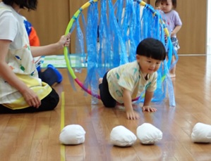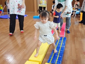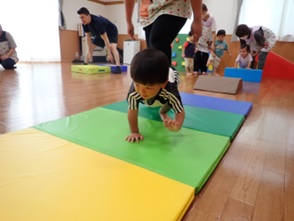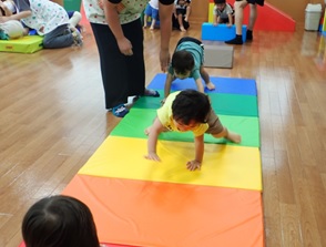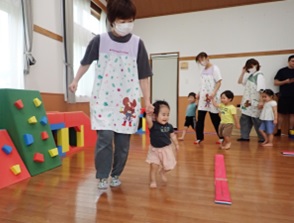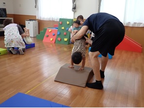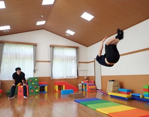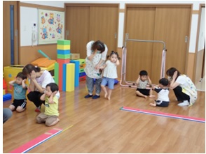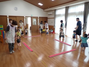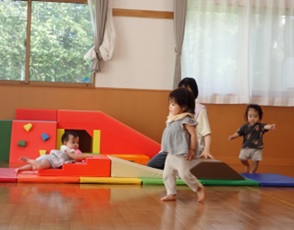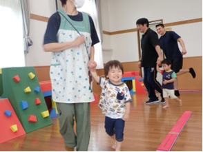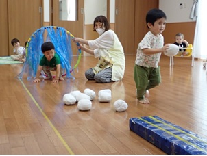 プレイルームでかけっこをしたり、体操