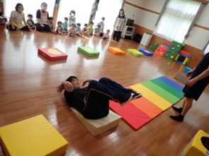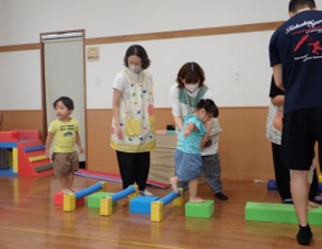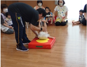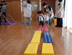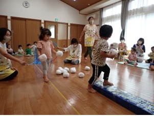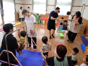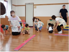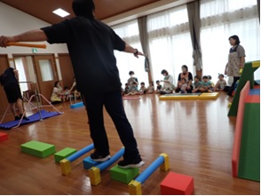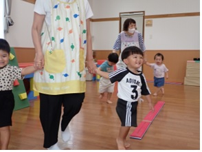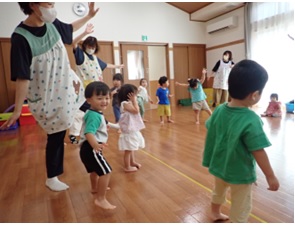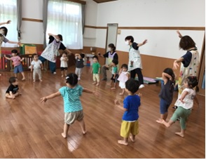 を促す運動遊びを行いました。職員も