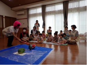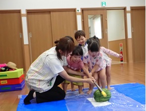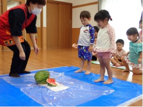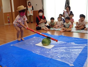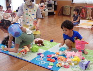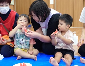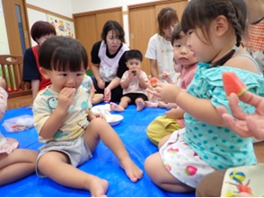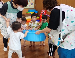 暑い日の保育園の様子