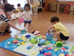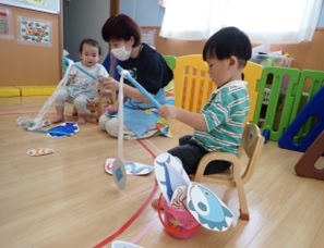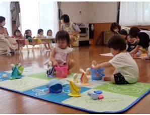 楽しみました。色々な玩具の中から水