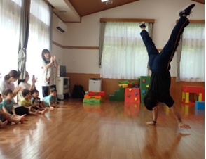 最後に逆立ちや側転、バク中を披露し