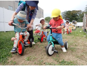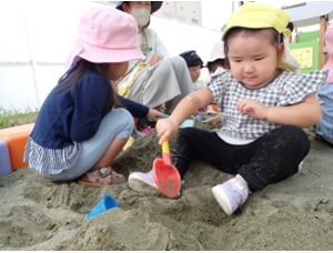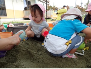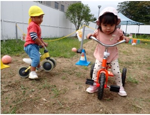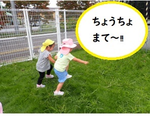 コアラ組とウサギ組は園庭遊びを楽し