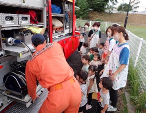 そして、その後は消防車をとても近く