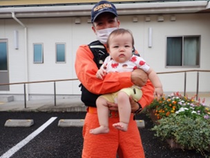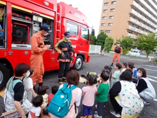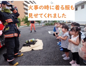 無事に外に避難した後は、消防士さん