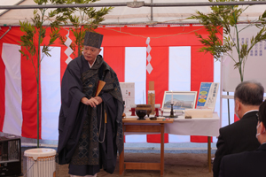 建設予定地にて地鎮式を執り行いました。当日は、徳成寺 三村東堂様のご導師のもと、工事の安全と施設の発展、