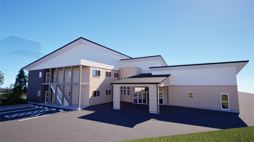 | 『地域密着サービス事業所 希望ヶ丘』 完成パース図 3つの福祉サービスが併設された複合施設です!! 令和8年11月の開所を予定しています! |