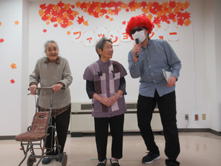 | ~もみじまつり&希望ヶ丘リサイタル~ 令和6年11月22日、もみじまつり・希望ヶ丘リサイタルを行いました。希望ヶ丘ホーム自治会役員さんを中心にメニューの決定や芋煮の具材切り、当日も司会進行などを行っていただきました。皆さんで話し合い、山形風の芋煮としました。。温かい芋煮やおこわ等をたくさん召し上がられ、「あったまるね」「おいしい」と笑顔で話されていました。また、余興としてクラブ活動発表会として希望ヶ丘リサイタルを行い、日頃楽しみながら頑張って行っているクラブ活動の成果を発表されていました。「18番の歌だから歌い慣れていて上手だね」等と皆さん楽しまれていました。 |
