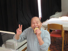| ~第7回盆踊り大会前夜祭~ 8月21日、「第7回盆踊り大会前夜祭」を行いました。ご利用者の皆さんは、お祭りらしい食事や射的ゲームを行いました。また、15名のご利用者の皆さんに紅晴美さんの「私のふるさと福島」という曲に合わせて力強い踊りを披露していただきました。最後に、職員が叩く太鼓の音と、ご利用者の方のお囃子に合わせ安積甚句を皆さんで踊りました。「やっぱり盆踊りは楽しいな」との声が聞かれ、皆さん楽しい時間を過ごされていました。 |