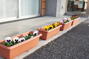あおぞら班の皆さんが育ててくださっている、色とりどりのパンジーが、